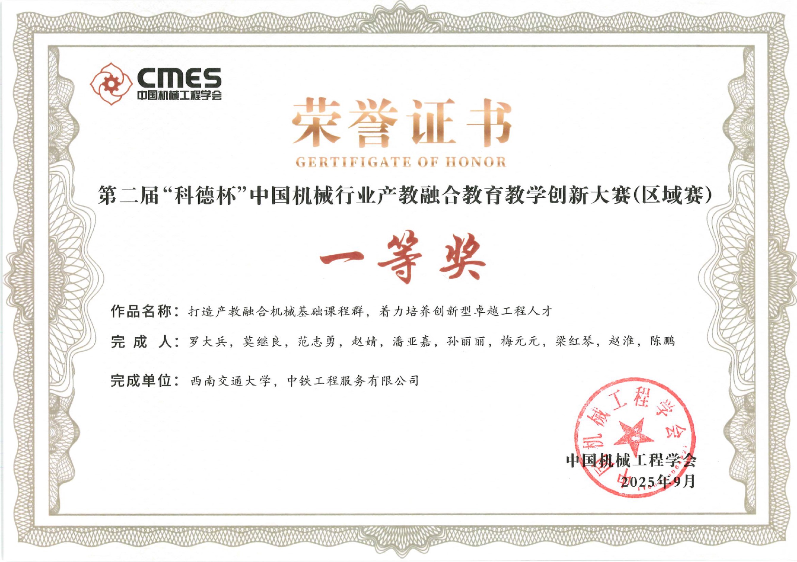 颁奖单位:中国机械工程学会