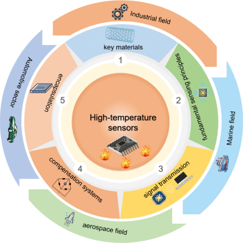 摘要:High-temperature sensors are irreplaceable for extreme-environment monitoring in aerospace, automotive, marine, and industry applications. This review synthesizes critical advances in materials, sensing principles, drift compensation, signal transmission, and encapsulation reliability. We analyze high-temperature-resistant ceramics, metals, crystalline materials, wide-band gap semiconductors, and high-entropy alloys, highlighting their operational mechanisms under high-temperature conditions. Subsequently, seven typical high-temperature sensing principles including fiber Bragg grating, LC resonance, Hall effect, magnetostriction, piezoelectric effect, Seebeck effect, and thermoelectric effect are expounded. Furthermore, the roles of software compensation strategies (curve fitting and neural networks) and hardware compensation approaches (material optimization and circuit design) in suppressing temperature drift are discussed. In addition, the thermomechanical reliability design of packaging technologies such as high-temperature tubular encapsulation, solid-state isolation encapsulation, substrate encapsulation, and leadless encapsulation is comprehensively reviewed. Finally, the operational performance of high-temperature sensors in high-temperature scenarios, such as automotive powertrains, aircraft engines, and marine turbines, is detailed. This review provides theoretical guidance and technical references for material selection, sensing principle innovation, and engineering implementation of high-temperature sensors.